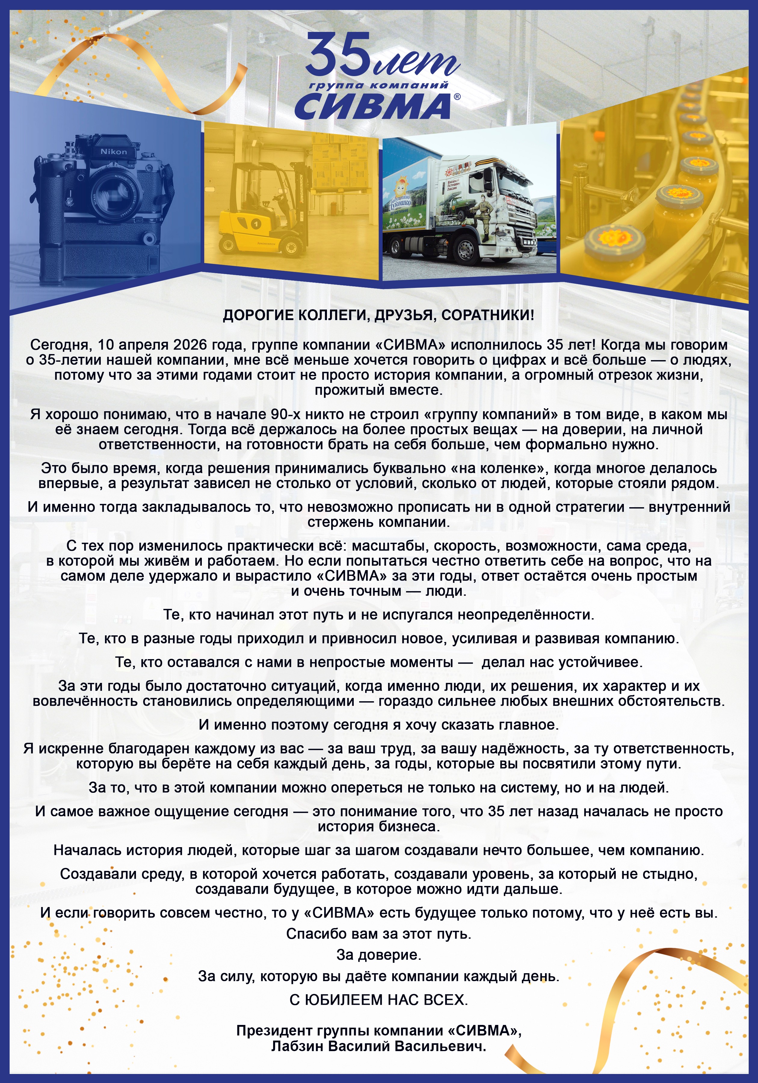 Поздравление с 35-летием ГК СИВМА