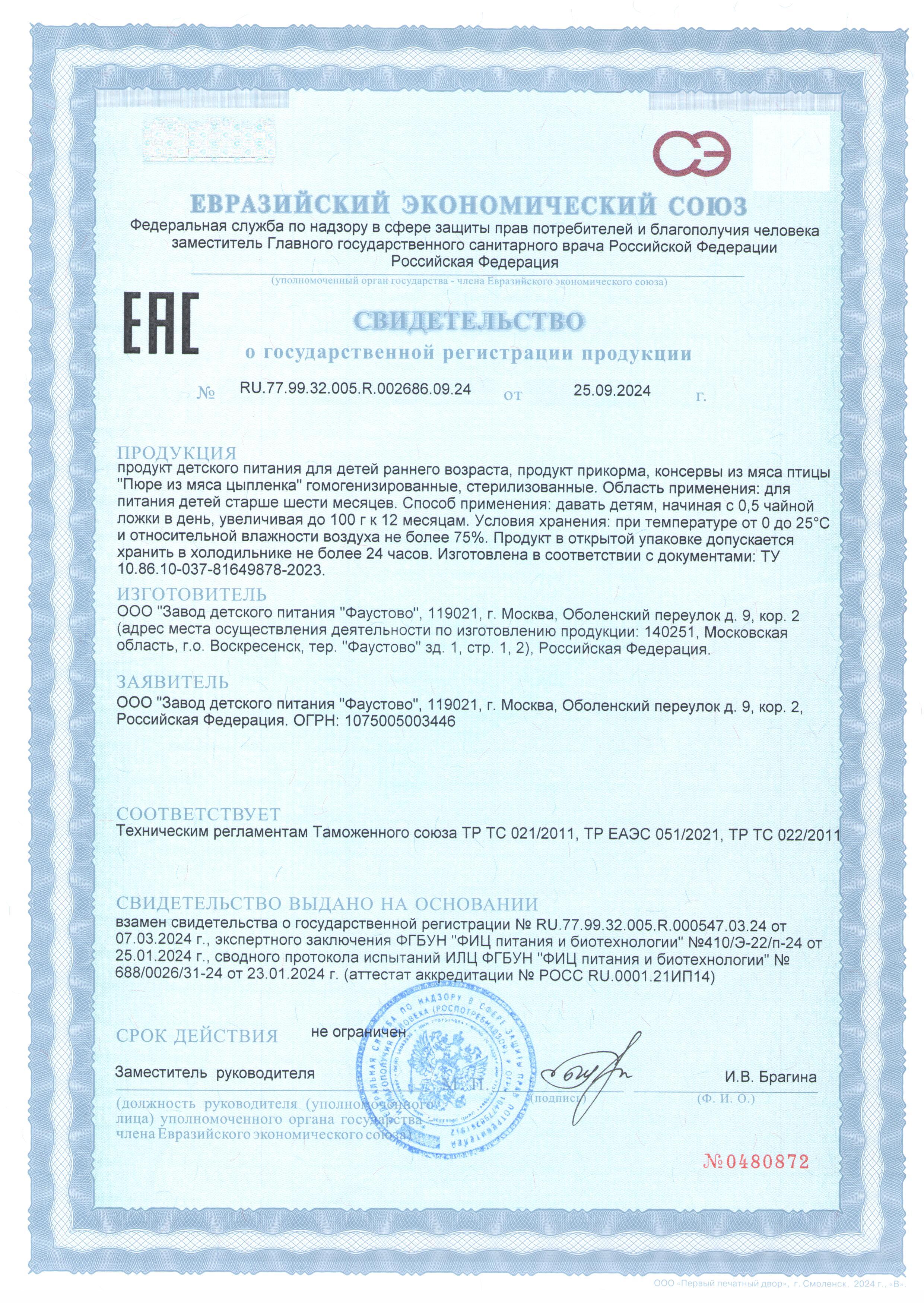 Пюре мясное гомогенизированное стерилизованное для питания детей раннего возраста